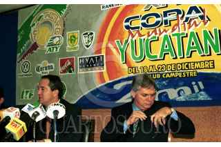 Francisco Maciel, presidente de la Federación Mexicana de Tenis y su similar de Yucatán, Jorge Robleda, presentaron la Copa Mundial Yucatán a realizarse este mes en aquella entidad. FOTO: Eduardo Loza/CUARTOSCURO.COM