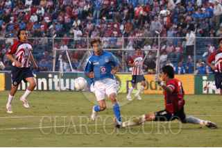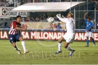 MÉXICO D.F. 25NOVIEMBRE2006.- Las Chivas Rayadas del Gudalajara clasificaron a la semifinal del torneo de apertura 2006, tras empatar a 2 goles con la Maquina Celeste del Cruz Azul, esto en el Estadio Azul. FOTO: GUILLERMO PEREA/CUARTOSCURO.COM