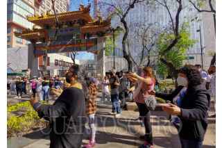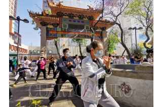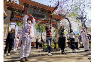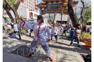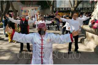 CIUDAD DE MÉXICO, 20MARZO2022.- Se realizó una clase de Taichi en la Plaza Santos Degollados, en el Barrio Chino, el evento fue convocado por el Instituto del Deporte como parte de las actividades al aire libre por la entrada de la primavera. FOTO: MOISÉS PABLO/CUARTOSCURO.COM