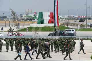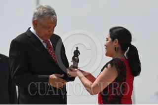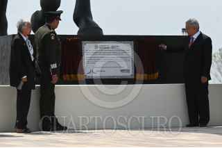 CIUDAD DE MÉXICO, 21MARZO2022.- Como parte de las actividades dentro de la inauguración del Aeropuerto Internacional Felipe Ángeles (AIFA) Andrés Manuel López Obrador, presidente de México, acompañado de su gabinete y los gobernadores de Hidalgo, Estado de México y Ciudad de México, Omar Fayad, Alfredo Del Mazo y Claudia Sheinbaum, develaron la placa de la estatua del General Felipe Ángeles. FOTO: DANIEL AUGUSTO /CUARTOSCURO.COM