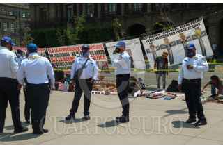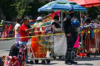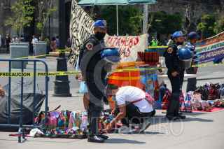 CIUDAD DE MÉXICO. 21MARZO2022.- Policías de la Capital, vigilan el Zócalo de la Ciudad; para que comerciantes ambulantes no tomen por completo la plancha de la Constitución. FOTO: VICTORIA VALTIERRA/CUARTOSCURO.COM
