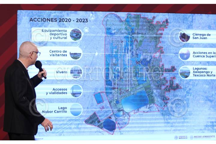 CIUDAD DE MÉXICO, 22MARZO2022.- Andrés Manuel López Obrador, presidente de México acompañado de Jorge Alcocer Varela, secretario de Salud; María Luisa Albores González, secretaria de Medio Ambiente y Recursos Naturales; Luis Cresencio Sandoval Gónzalez, secretario de la Defensa Nacional; Hugo López-Gatell Ramírez, subsecretario de Prevención y Promoción de la Salud; Germán Martínez Santoyo, director general Comisión Nacional del Agua; Iñaki Echevarría, Encargado del Parque Ecológico Lago de Texcoco y Juan Pablo Botton, subsecretario de Egresos durante la conferencia matutina dedicada al tema del Lago de Texcoco y Salud. FOTO: ANDREA MURCIA /CUARTOSCURO.COM
