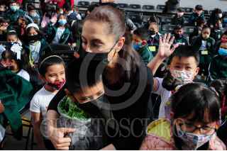 CIUDAD DE MÉXICO, 22MARZO2022.- Claudia Sheinbaum, jefa de gobierno de la capital, asistió a la primaria Belisario Domínguez, ubicada en la Alcaldía Cuauhtémoc, para conmemorar sus 100 años de aniversario, la mandataria capitalina estuvo acompañada por Martí Batres, secretario de Gobierno capitalino y Héctor Vasconcelos, senador de la República. FOTO: DANIEL AUGUSTO / CUARTOSCURO.COM
