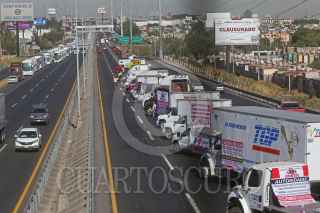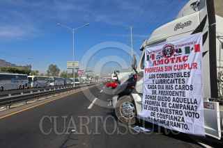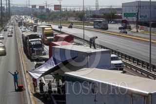 GUADALAJARA, JALISCO, 22MARZO2022.- Desde tempranas horas de este martes decenas de transportistas se manifestaron en diversos puntos de la ciudad, esto en protesta nacional por una larga lista de peticiones, algunas de ellas, la seguridad en las carreteras, los operativos de la FGR, el aumento de los precios de los combustibles entre otras. FOTO: FERNANDO CARRANZA GARCIA / CUARTOSCURO.COM
