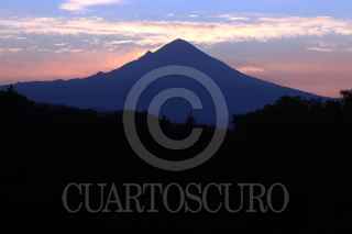 TEPOZTLÁN MORELOS,23MARZO2022.- En las últimas horas el volcán Popocatépetl ha mantenido una actividad menor con exhalaciones de baja intensidad acompañadas de vapor de agua y ligeras cantidades de ceniza. En la imagen el volcán visto desde el Parque Nacional El Tepozteco durante el amanecer. FOTO: MARGARITO PÉREZ RETANA / CUARTOSCURO.COM