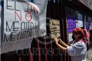 CIUDAD DE MÉXICO, 24MARZO2022.- Estudiantes se manifestaron en el Centro de Estudios Científicos y Tecnológicos (CECyT) 7 Cuauhtémoc, del Instituto Politécnico Nacional (IPN) para exigir justicia por la presunta agresión sexual que sufrió una estudiante de 15 años al interior del plantel. De acuerdo a la carpeta de investigación de la Fiscalía General de Justicia de la Ciudad de México (FGJCDMX), la menor fue drogada y abusada por dos sujetos. FOTO: MARIO JASSO/ CUARTOSCURO.COM