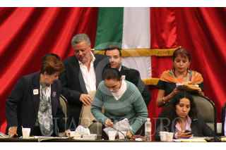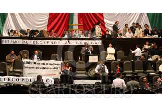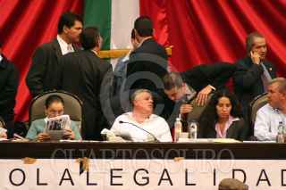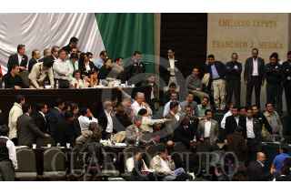 MÉXICO, D.F. 28NOVIEMBRE2006.- La tribuna continua tomada por diputados del PAN y PRD a más de 24 horas de la irrupción en la sesión en la cámara de diputados. Jorge Zermeño, presidente de la mesa directiva. FOTO: PAOLA HIDALGO/CUARTOSCURO.COM