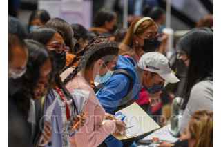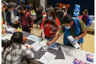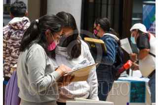 TOLUCA, ESTADO DE MÉXICO, 24MARZO2022.- Desde temprana hora se dieron cita hombres y mujeres a la Feria Nacional del Empleo instalada en la Concha Acústica en Toluca en donde se vieron cita empresas de diversos ramos para ofertar vacantes. FOTO: CRISANTA ESPINOSA AGUILAR /CUARTOSCURO.COM