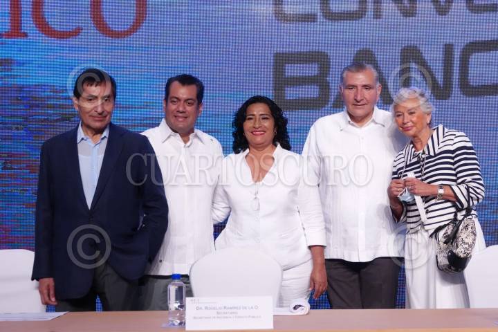 ACAPULCO, GUERRERO, 24MARZO2022.- Andrés Manuel López Obrador, presidente Constitucional de los Estados Unidos Mexicanos, encabezó la inauguración de la 85 Convención Bancaria de la Asociación de Bancos de México. Lo acompañaron Evelyn Salgado, gobernadora de Guerrero; Rogelio Ramírez de la O, secretario de Hacienda y Crédito Público; Victoria Rodríguez Ceja, gobernadora del Banco de México; Daniel Becker, presidente de la Asociación de Bancos de México; Olga Sánchez Cordero, presidenta de la Mesa Directiva del Senado; Adán Augusto, secretario de Gobernación; Gabriel Yorio González, subsecretario de Hacienda y Crédito Público y los banqueros que integran la Asociación de Bancos de México. FOTO: GRACIELA LÓPEZ /CUARTOSCURO.COM