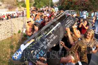 YAUTEPEC MORELOS,25MARZO2022.- Procesión de las “viudas”, hombres vestidos de mujer que cargan en un ataúd el mal humor, al cual lo llevan a tirar al rio Yautepec. Esta actividad marca el inicio del tradicional Carnaval de Semana Santa, el cual estuvo dos años suspendió por la pandemia del covid-19. FOTO: MARGARITO PÉREZ RETANA / CUARTOSCURO.COM
