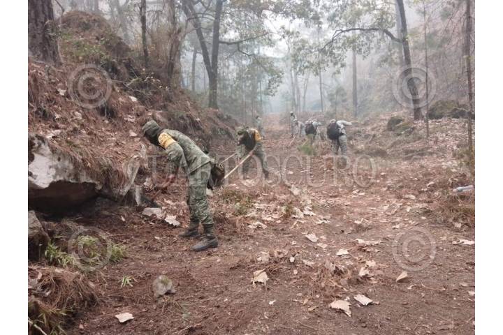 SANTIAGO, NUEVO LEÓN, 25MARZO2022.- Un nuevo incendio en la Sierra de Santiago a la altura del poblado Potrero Redondo provocó la evacuación de 57 familias y trasladadas al albergue en un hotel de la Cola de Caballo. Protección Civil estima 35 hectáreas afectadas. Elementos de la SEDENA se suman a las labores para combatir el incendio forestal. FOTO: CUARTOSCURO.COM