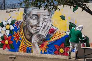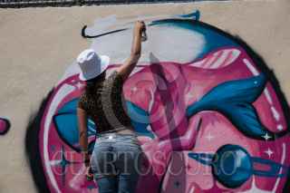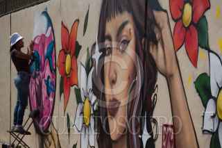 CIUDAD DE MÉXICO, 26MARZO2022.- Con motivo de la inauguración de la ampliación de la Línea 4 del metrobús, artistas urbanos adornaron con grafittis de rostros de mujeres una barda frente a la estación de Río Churubusco esquina con calle 6 del Mexibús. FOTO: GALO CAÑAS/CUARTOSCURO.COM
