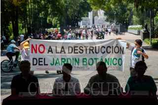 CIUDAD DE MÉXICO, 27MARZO2022.- José Luis Rodríguez Díaz de León, secretario del Trabajo y Fomento al Empleo; Marina Robles García, secretaria del Medio Ambiente; Fadlala Akabani Heinde, secretario de Desarrollo Económico, y Leticia Gutiérrez Lorandi, coordinadora de Políticas y Cultura Ambiental, inauguraron la Primera Feria de Ecotecnias para la Cosecha de Lluvia, en la entrada del Bosque de Chapultepec. Ahí opositores al Jardín Botánico se manifestaron para exigir no se destruye este sitio en el Proyecto Chapultepec. FOTO: MOISÉS PABLOCUARTOSCURO.COM