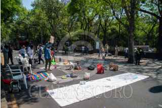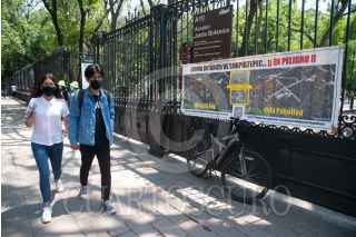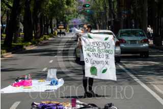 CIUDAD DE MÉXICO, 27MARZO2022.- Jóvenes realizaron un picnic informativo sobre el arroyo vehicular de avenida Reforma frente al Jardín Botánico Nezahualcóyotl de Chapultepec, para exigir que este no se mueva, actualmente esta en la primera sección, pero en el proyecto Pabellón Contemporáneo Naturaleza y Cultura se pretende cambiar su ubicación a la segunda sección del Bosque de Chapultepec. FOTO: MOISÉS PABLOCUARTOSCURO.COM