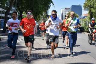 CIUDAD DE MÉXICO, 27MARZO2022.- Daniel Almanza "Superhuman" recorrerá corriendo el país de sur a norte, esta mañana recorrió lugares icónicos y emblemáticos de la Ciudad de México acompañado de corredores capitalinos, y quien desarrolla el proyecto “Superhuman” que consiste en correr 6 mil kilómetros en un lapso de 100 días. FOTO: GOBIERNO DE LA CIUDAD DE MÉXICO/CUARTOSCURO.COM