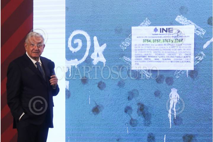 CIUDAD DE MÉXICO, 28MARZO2022.- Andrés Manuel López Obrador, Presidente de México, y Ricardo Sheffield Padilla, titular de Profeco, durante la conferencia mañanera en Palacio Nacional. FOTO: MOISÉS PABLO/CUARTOSCURO.COM