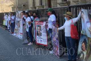 GUADALAJARA, JALISCO, 28MARZO2022.- Esta mañana familiares de personas desaparecidas realizaron una cadena humana en los alrededores de Palacio de Gobierno, esto para sensibilizar a la ciudadanía sobre el grave problema en materia de seguridad en la entidad, particularmente en el tema de personas desaparecidas. FOTO: FERNANDO CARRANZA GARCIA / CUARTOSCURO.COM