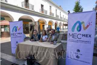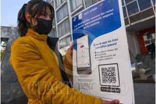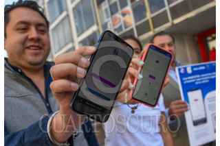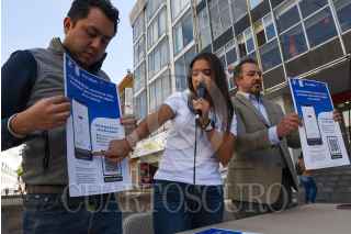 TOLUCA, ESTADO DE MÉXICO, 28MARZO2022.- Derik Roa, fundación de EcoUrban, Regina Gorostieta, fundadora de Muevetex y David Tapia vocero de MecMex realizaron la presentación de la aplicación piloto Muevetex dirigida a usuarios del transporte público en el Valle de Toluca, en donde podrán consultar rutas de transporte así como denunciar delitos, desde que invierno a trabajar en esta aplicación que por el momento solo está disponible en su versión Web, tiene aproximadamente 5 mil usuarios activos. FOTO: CRISANTA ESPINOSA AGUILAR /CUARTOSCURO.COM