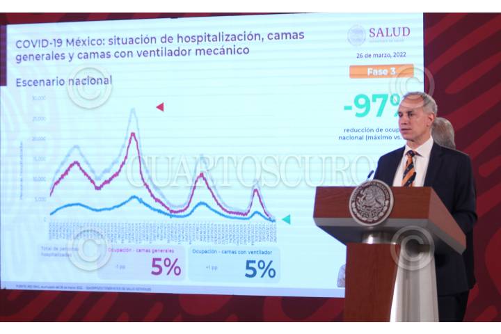 CIUDAD DE MÉXICO, 29MARZO2022.- Andrés Manuel López Obrador, presidente de México acompañado de Jorge Alcocer Varela, secretario de Salud; Hugo López-Gatell Ramírez, subsecretario de Prevención y Promoción de la Salud durante la conferencia matutina en Palacio Nacional. FOTO: ANDREA MURCIA /CUARTOSCURO.COM