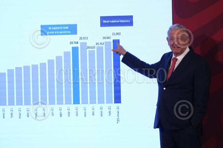 CIUDAD DE MÉXICO, 29MARZO2022.- Andrés Manuel López Obrador, presidente de México acompañado de Jorge Alcocer Varela, secretario de Salud; Hugo López-Gatell Ramírez, subsecretario de Prevención y Promoción de la Salud durante la conferencia matutina en Palacio Nacional. FOTO: ANDREA MURCIA /CUARTOSCURO.COM