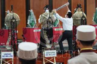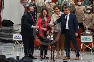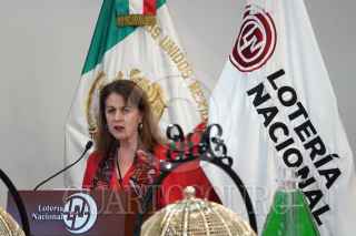 CIUDAD DE MÉXICO, 29MARZO2022.- Margarita González Saravia Calderón, directora general de Lotería Nacional, Miguel Manuel Ramírez Mandujano, director corporativo jurídico del Instituto para Devolver al Pueblo lo Robado (Indep), en representación del director general, Ernesto Prieto Ortega, encabezaron el Gran Sorteo Especial 256 alusivo a Playa Espíritu II. El evento se realizó en las instalaciones de la Lotería Nacional. FOTO: GRACIELA LÓPEZ /CUARTOSCURO.COM