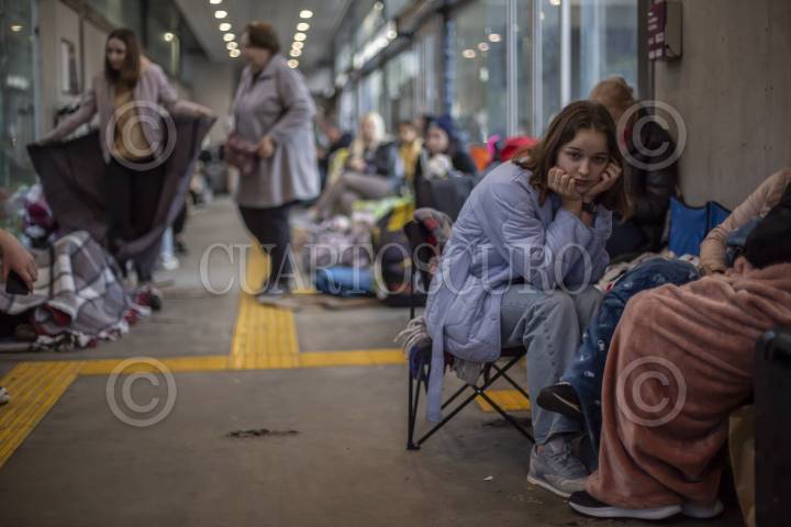 TIJUANA BAJA CALIFORNIA, 29MARZO2022.- Gran cantidad de migrantes ucranianos pernoctan el una estación de transporte ubicada en la garita internacional de San Ysidro, la cual se ha convertido en refugio del frio y la lluvia para los migrantes que llegaron a la ciudad fronteriza en busca de solicitar asilo humanitario en Estados Unidos. Las personas, en su mayoría mujeres y niños, esperan en la estación del Sistema Integral de Transporte Tijuana (SITT) el turno para entrevistarse con autoridades estadounidenses después de huir de Ucrania que se encuentra en conflicto con Rusia. FOTO: OMAR MARTÍNEZ /CUARTOSCURO.COM