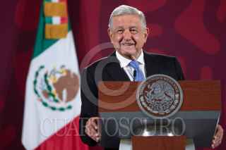 CIUDAD DE MÉXICO, 30MARZO2022.- Andrés Manuel López Obrador, Presidente de México en conferencia de prensa en el Salón Tesorería de Palacio Nacional. Acompaña al mandatario: Ana Elizabeth García Vilchis. FOTO: PRESIDENCIA/CUARTOSCURO.COM