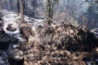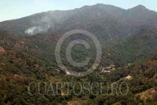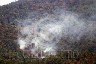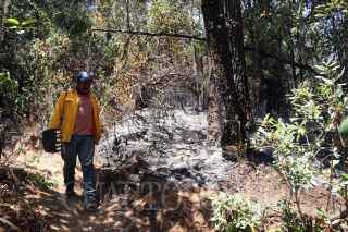 OCUILAN, ESTADO DE MÉXICO, 30MARZO2022.- Un incendio forestal que afecto el paraje de los Pocitos cerca de la comunidad de Mexicapan, fue combatido por 110 brigadistas del Estado de México, Morelos, de Probosque y de la Comisión Nacional Forestal. El incendio que afecto mas de una hectárea de bosque y hojarasca comenzó durante la madrugada y fue sofocada al medio día. FOTO: MARGARITO PÉREZ RETANA / CUARTOSCURO.COM