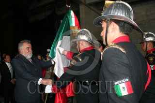 MÉXICO, D.F. NOVIEMBRE2006.- El periodista Carlos Marín, el próximo jefe de gobierno capitalino, Marcelo Ebrard y Mariagna Pratz estuvieron presentes en la estación de bomberos "Ave Fenix" que inaugiró Alejandro Encinas, jefe de gobierno capitalino. FOTO: PAOLA HIDALGO/CUARTOSCURO.COM