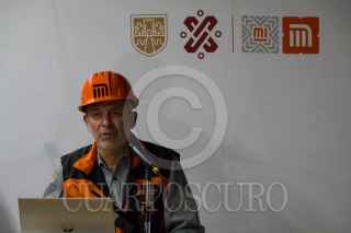 CIUDAD DE MÉXICO, 30MARZO2022.- Guillermo Calderón Aguilera, director general del Sistema de Transporte Colectivo (metro) encabezó la conferencia de prensa en las inmediaciones de la estación Mexicaltzingo donde anunció que se cambiarán los cárcamos de la parte subterránea de la Línea 12 del metro. A fin de resolver las filtraciones de agua FOTO: GALO CAÑAS/CUARTOSCURO.COM