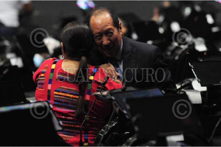 CIUDAD DE MÉXICO, 31MARZO2022.- Actividades de la sesión ordinaria de este jueves en la Cámara de Diputados donde se conmemoró el Día Internacional de la Visibilidad Trans. Los legisladores de Morena ingresaron al pleno la bandera que representa a dicha comunidad. FOTO: DANIEL AUGUSTO /CUARTOSCURO.COM