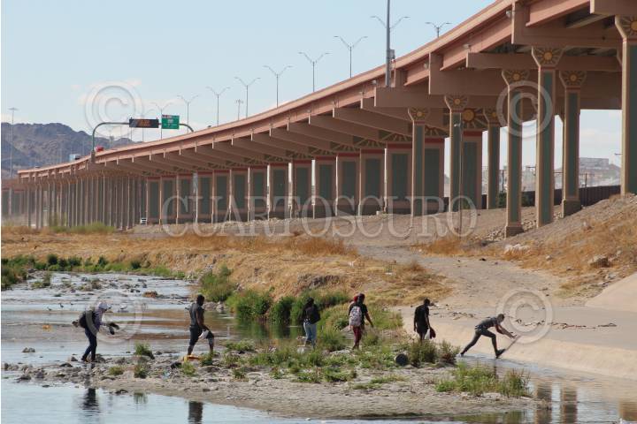 CIUDAD JUÁREZ, CHIHUAHUA, 31MARZO2022.- Un migrantes acompañados de dos menores que buscan asilo político en El Paso, Texas, Estados Unidos, cruzaron corriendo el Río Bravo para posteriormente entregarse a los agentes de la Patrulla Fronteriza y poder así iniciar su tramite de asilo político. FOTO: YUBIA RAMOS/CUARTOSCURO.COM
