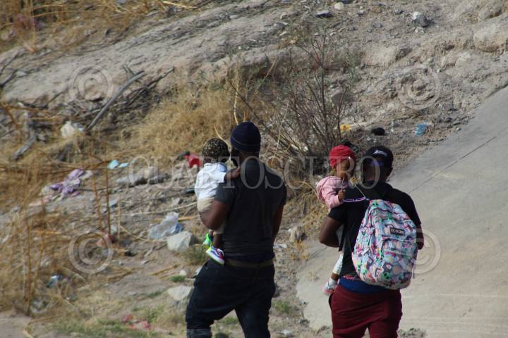 CIUDAD JUÁREZ, CHIHUAHUA, 31MARZO2022.- Un migrantes acompañados de dos menores que buscan asilo político en El Paso, Texas, Estados Unidos, cruzaron corriendo el Río Bravo para posteriormente entregarse a los agentes de la Patrulla Fronteriza y poder así iniciar su tramite de asilo político. FOTO: YUBIA RAMOS/CUARTOSCURO.COM