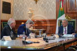 CIUDAD DE MÉXICO, 31MARZO2022.- Ken Salazar, embajador de Estados Unidos en México; John Kerry, enviado presidencia especial para el Clima de Estados Unidos, y Andrés Manuel López Obrador, Presidente de México, se reunieron en Palacio Nacional para trata el tema de la crisis climática. FOTO: PRESIDENCIA/CUARTOSCURO.COM