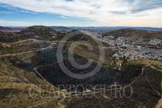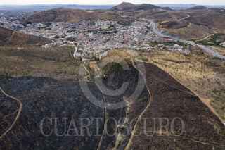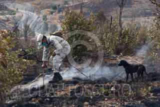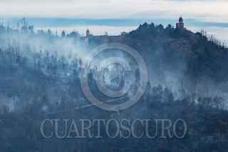 ZACATECAS, ZACATECAS, 31MARZO2022.- Un incendio forestal se presentó en las faldas del histórico Cerro de la Bufa. El siniestro, presuntamente provocado por intervención humana, duró activo durante dos horas y consumió por lo menos siete hectáreas de pastizales, nopales jóvenes y pequeños arboles de eucaliptos. En el control y extinción del fuego participaron brigadas Comisión Nacional Forestal, Protección Civil Estatal y Municipal, Guardia Nacional y Ejército Mexicano. FOTO: ADOLFO VLADIMIR /CUARTOSCURO.COM