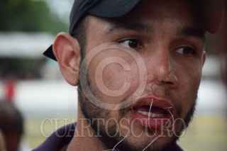 TAPACHULA, CHIAPAS, 01ABRIL2022.- Migrantes se costuran los labios. 4 migrantes que salieron en Viacrucis se costuran los labios debido a que las autoridades del Instituto Nacional de Migración detuvieron a sus compatriotas. Los migrantes que se encuentran descansando al interior de la iglesia cuentan con su forma migratoria múltiple que les otorga 180 días en territorio mexicano. FOTO: DAMIÁN SÁNCHEZ/CUARTOSCURO.COM