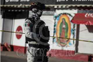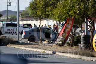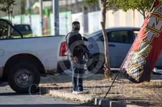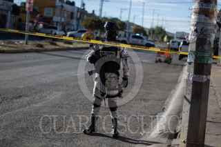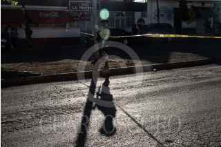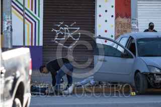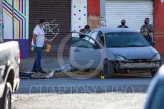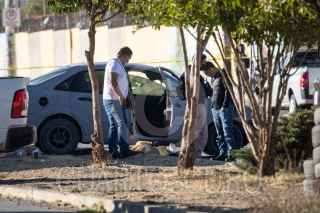 GUADALUPE, ZACATECAS, 01ABRIL2022.- Dos jóvenes de entre 20 y 25 años, fueron asesinados en un ataque armado cuando se trasladaban abordo de un vehículo en la colonia Villas de Guadalupe. Al rededor de las 16:30 hrs vecinos alertaron de una persecución entre vehículos y fuertes detonaciones, minutos después un ford focus gris quedó en medio del camellón y cuando los jóvenes intentaban huir a pie fueron alcanzados por los disparos, quedando tirados junto al carro; Paramédicos llegaron a dar los primeros auxilios, pero los hombres ya no contaban con signos vitales, peritos y policías de la Fiscalía acordonaron el área para realizar las primeras investigaciones. Elementos de la Policía Municipal y Guardia Nacional resguardaron la zona. Vecinos de los alrededores al ataque cerraron sus locales comerciales por temor y el ambiente de inseguridad de la zona en esos momentos. FOTO: GENARO NATERA /CUARTOSCURO.COM