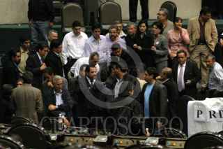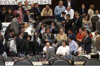 MÉXICO D.F.30NOVIEMBRE2006.-Los diputados panistan dialogan con su cordinador Hector Larios horas antes de la tomade protesta del presidente electo Felipe Calderón en la Cámara de diputados. FOTO: GUILLERMO PEREA-CUARTOSCURO.COM