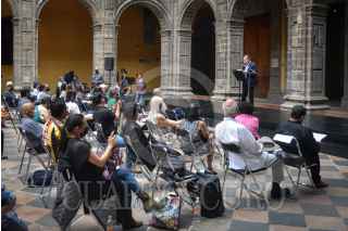 CIUDAD DE MÉXICO, 02ABRIL2022.- En el marco del programa de actividades Octavio Paz de vuelta a San Ildefonso, se llevó a cabo una lectura de poesía con la participación de los poetas: Adolfo Castañón; Malva Flores; Víctor Manuel Mendiola; Tania Favela; y la escritora Edith Noyola. FOTO: MARIO JASSO/CUARTOSCURO.COM