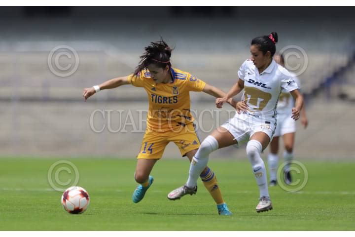 CIUDAD DE MÉXICO, 02ABRIL2022.- Partido de fútbol correspondiente a la jornada 14 del torneo Clausura 2022 “Grita por la paz” de la Liga MX Femenil entre Pumas vs Tigres en el estadio Olímpico Universitario. FOTO: EDGAR NEGRETE/CUARTOSCURO.COM
