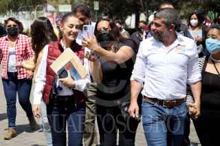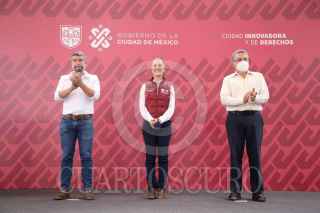 CIUDAD DE MÉXICO, 02ABRIL2022.- Mauricio Tabe, alcalde de Miguel Hidalgo; Claudia Sheinbaum, jefa de Gobierno, y Rafael Carmona, coordinador General de SACMEX, ofrecieron una conferencia de prensa posterior a la mesa de trabajo de agua en la alcaldía Miguel Hidalgo. FOTO: GOBIERNO DE LA CIUDAD DE MÉXICO /CUARTOSCURO.COM