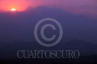 CIUDAD DE MÉXICO, 03ABRIL2022.- Este día inicio el horario de verano, el cual durara hasta el 30 de octubre, en la imagen el sol emerge detrás del volcán Iztaccíhuatl. FOTO: MARGARITO PÉREZ RETANA / CUARTOSCURO.COM