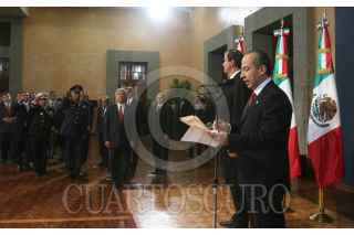 MÉXICO 01 DE DICCIEMBRE 2006.- El presidente Felipe Calderon Hinojosa durante la ceremonia donde asumio el cargo realizada en los pinos, acompañado del ex presidente Vicente Fox. FOTO:PRESIDENCIA/CUARTOSCURO.COM