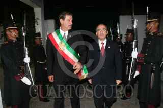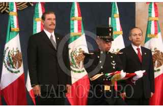 MÉXICO, DF. 01 DE DICCIEMBRE 2006.- Felipe Calderon Hinojosa durante la ceremonia donde asumio el cargo como presidente, acompañado de Vicente Fox. FOTO:PRESIDENCIA/ CUARTOSCURO.COM