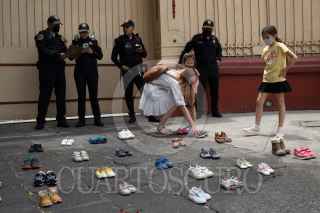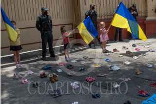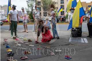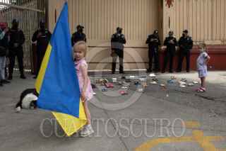 CIUDAD DE MÉXICO, 03ABRIL2022.- Ucranianos avecindados en nuestro país se manifestaron en la Embajada de Rusia para denunciar la muerte de más de 400 niños en la invasión rusa a Ucrania. FOTO: MOISÉS PABLO/CUARTOSCURO.COM
