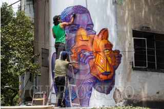 CIUDAD DE MÉXICO, 03ABRIL2022.- Jóvenes pintan un graffiti en el colonia Condesa. FOTO: MOISÉS PABLO/CUARTOSCURO.COM