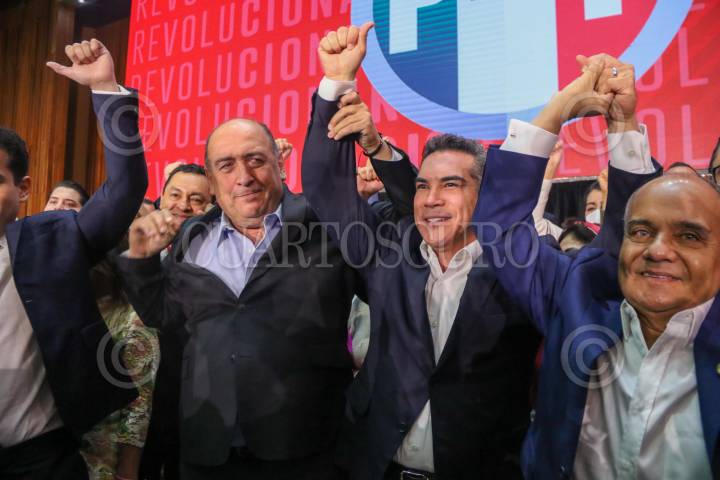 CIUDAD DE MÉXICO. 04MARZO2022.- Alejandro Moreno acompañado de Rubén Moreira y de Manuel Añorve; fijo la postura del Revolucinario Institucional frente al llamado del Presidente López Obrador a sumarse a su propuesta de la reforma energética. FOTO: VICTORIA VALTIERRA/CUARTOSCURO.COM