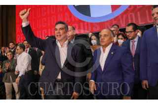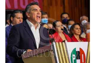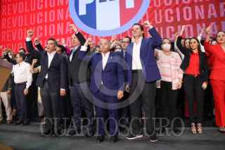 CIUDAD DE MÉXICO. 04MARZO2022.- Alejandro Moreno acompañado de Rubén Moreira y de Manuel Añorve; fijo la postura del Revolucinario Institucional frente al llamado del Presidente López Obrador a sumarse a su propuesta de la reforma energética. FOTO: VICTORIA VALTIERRA/CUARTOSCURO.COM