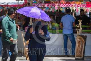 TOLUCA, ESTADO DE MÉXICO, 04ABRIL2022.- Ante las elevadas temperaturas que se han registrado en la mayor parte del territorio nacional, en la capital mexiquense las personas optan por salir a realizar sus actividades protegiéndose del sol con sombreros, paraguas e hidratándose constantemente. FOTO: CRISANTA ESPINOSA AGUILAR /CUARTOSCURO.COM