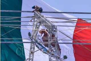 CIUDAD DE MÉXICO, 05ABRIL2022.- Trabajadores continúan con la construcción de la Réplica de la Capilla Sixtina que se instalará en el Zócalo capitalino del 19 de abril al 19 de mayo. FOTO: MARIO JASSO/CUARTOSCURO.COM